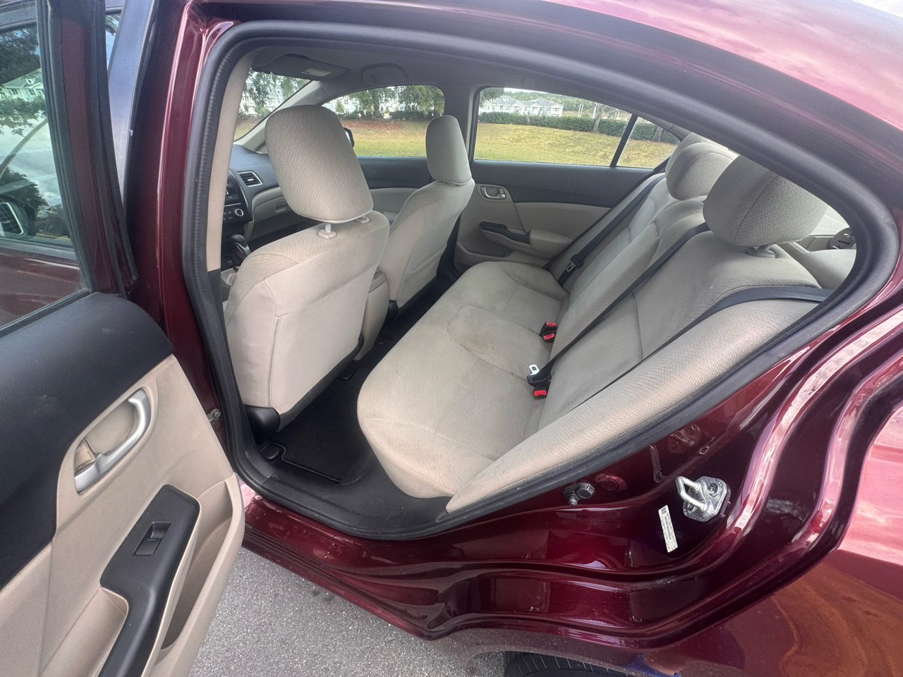 Hop in and buckle up for a thrilling ride in this sleek Burgundy 2013 Honda Civic Sdn! Powered by a 1.8L i-VTEC engine with an aluminum-alloy block, this compact sedan is ready to hit the road with its Eco Assist system and smooth 5-speed automatic transmission. Turn heads with its body-colored exterior accents, halogen headlights, and sporty 15-inch tires.